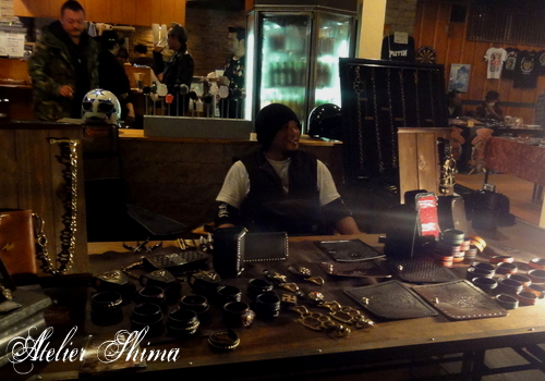 今回はバイカーズパーティーでしたので、レザーアイテムやコンチョを中心に展示してみました。
