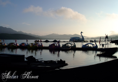 日が昇り始めたばかりの山中湖。とても綺麗でした。