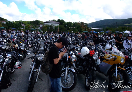 早朝小雨がパラつき、SR乗りの皆さんが来て下さるか心配しましたが、イベントスタートの11時には、見渡す限りのSR!