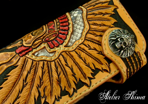 「BURNBURN」のインディアンスカルのウォレット×「Atelier Shima」のHalf Indian Chief Skull Concho