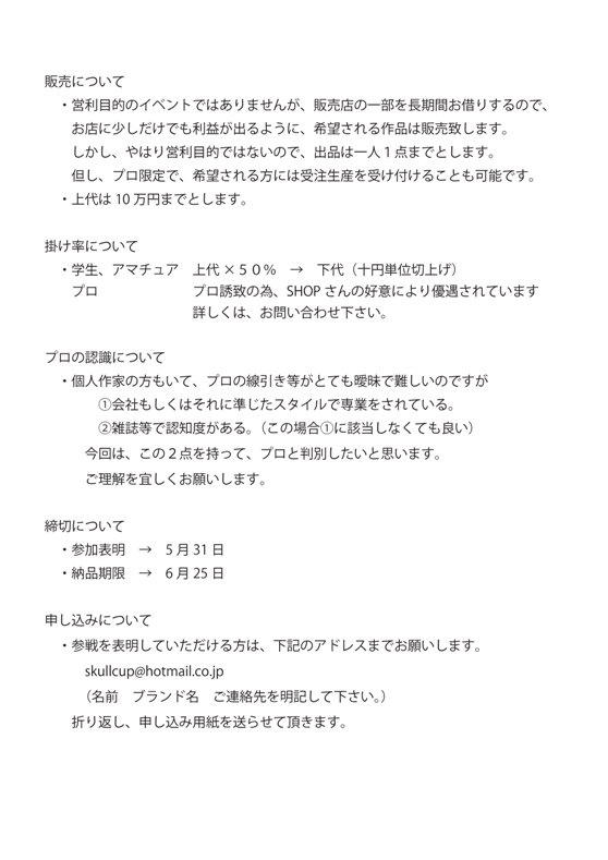 前回の日記で告知したSKULL CUP 2011 第01回 髑髏杯にも、ヒコみづの学生の参戦が決定していますので、どんな作品が出てくるのか今からとても楽しみにしています。