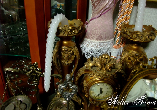 商品の撮影の為に購入したアンティーク雑貨などが並んでおります。