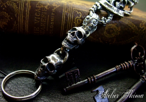 スカルのパーツも従来のものではポップ過ぎるので、今回のキーチェーンに合わせた写実的なスカルを製作致しました。
