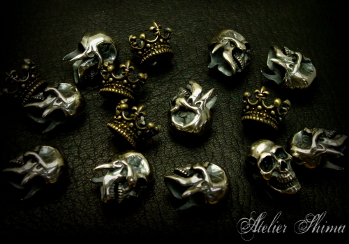 レザーアイテムに合わせられるシルバー925製スカルビーズ&ブラス製クラウンビーズ!