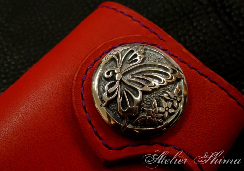 こちらはウォレット。1ドル硬貨と同じサイズですので付け替えてもコンチョの跡が目立ちません。