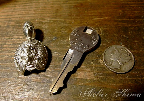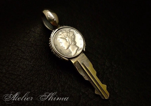 予め製作しておいたシルバーのパーツに、スペアキーをセットし、さらにリバティー銀貨を被せます。