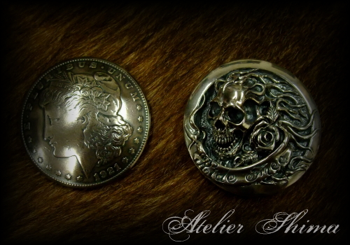 こちらもかっこいいのですが、モルガンダラー銀貨のコンチョは使っている人がいっぱい。