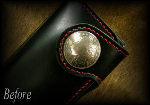こちらは1ドルモルガンダラーコンチョを付けたウォレット。
