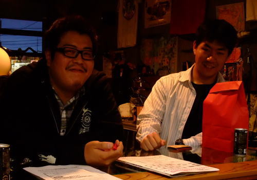カスタムバーニング編集部の歩く0.1tこと トサQと、バーニング的ニューフェイスの水越さんが打ち合わせにやってきました。