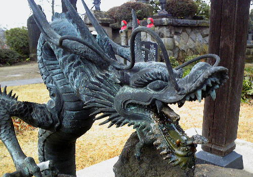 画像はお寺の入り口で存在感を漂わせていたブロンズ製の龍。