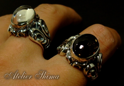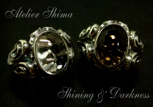 光をイメージした無色透明のクリスタル・闇を彷彿させる深いブラウンのスモーキークォーツ。