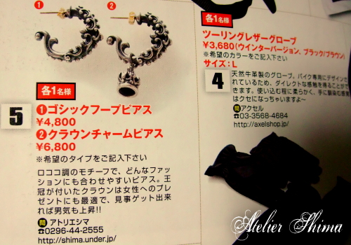 先月号に引き続き、10月号でもAtelier Shima(アトリエシマ)の商品を掲載して頂きました。