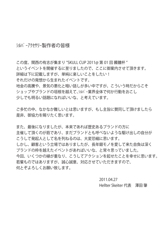 前回の日記で告知したSKULL CUP 2011 第01回 髑髏杯にも、ヒコみづの学生の参戦が決定していますので、どんな作品が出てくるのか今からとても楽しみにしています。
