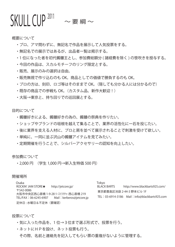 いよいよ来月7月1日より開催されますSKULL CUP 2011 第1回 髑髏杯!